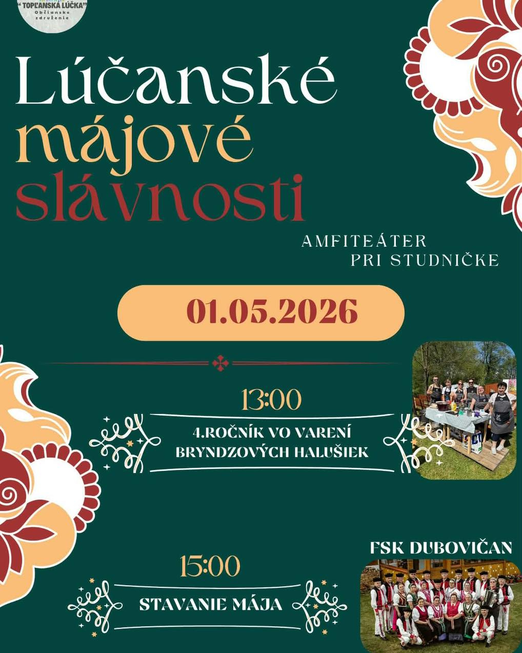 Občianske združenie Topľanská Lúčka Vás 1. mája 2026 srdečne pozýva do Lúčky na tradičné Májové slávnosti! ![]()